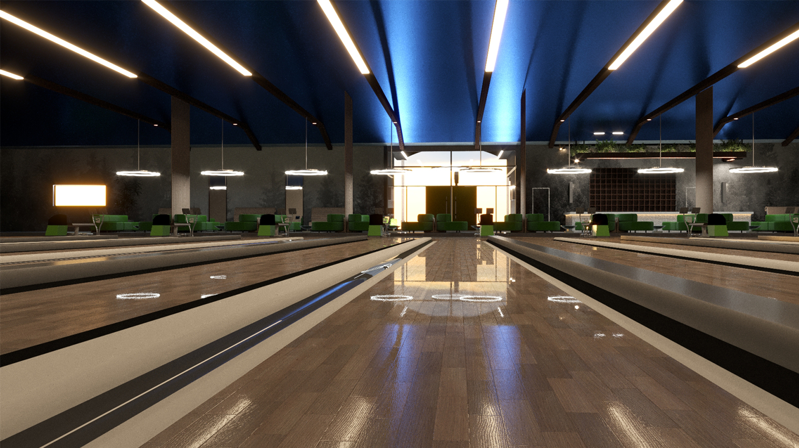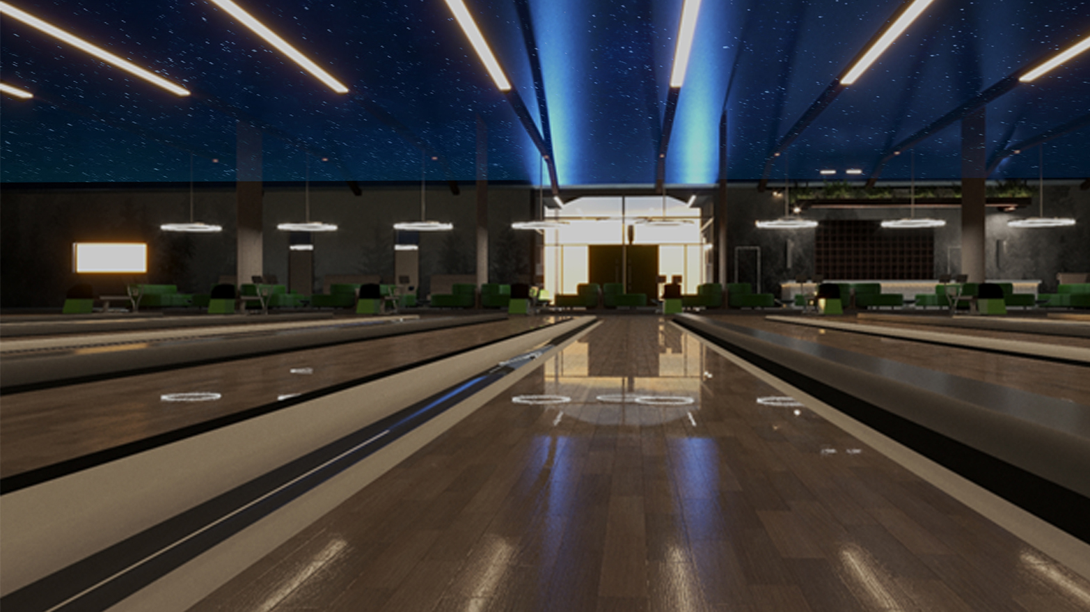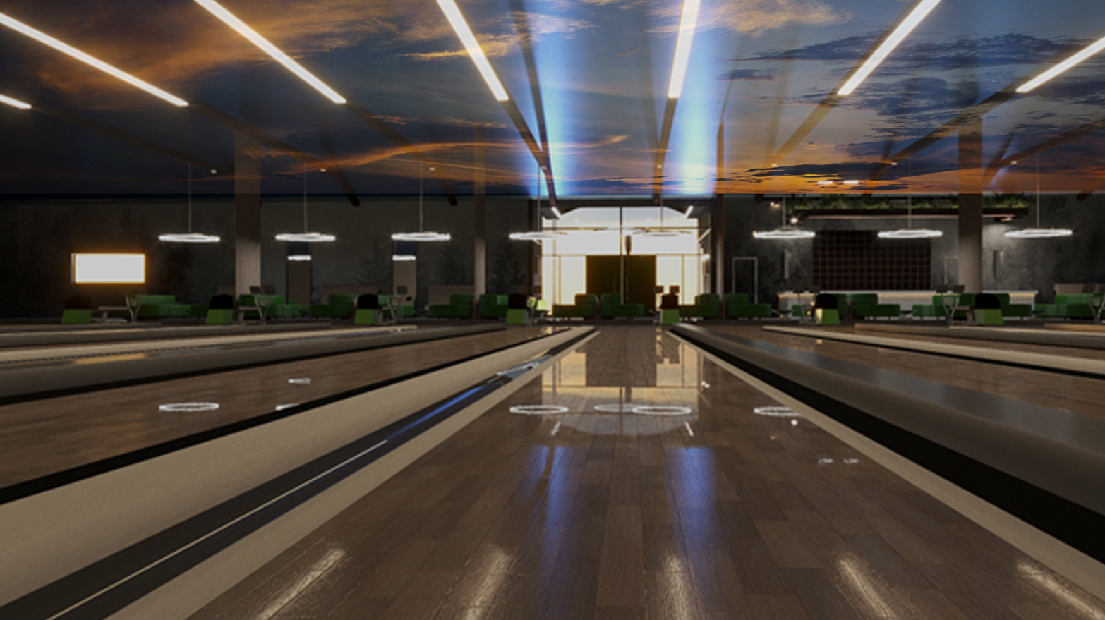 The conceptual design calls for a rebranding of the space as a whole—perhaps a new, notable restaurant and bar get re-named with bowling in mind: